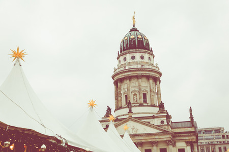 BERLIN, GERMANY - DECEMBER 06,2017: Christmas market, Deutscher Dom and konzerthaus in Berlin, Germany