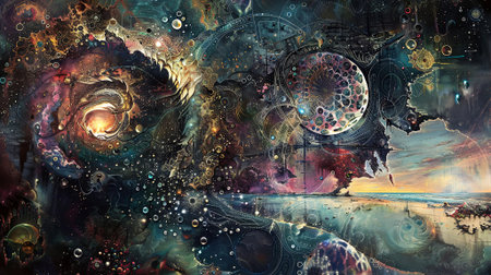 Experience the captivating fusion of celestial artistry and intricate patterns in this mesmerizing cosmic abstract. Perfect for any art lover, this image sparks creativity and wonder. Generated A.I.