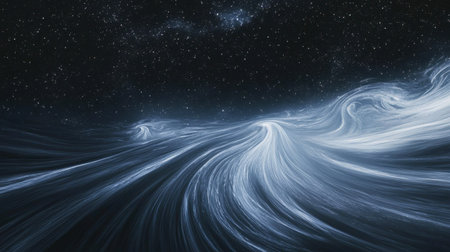 A long exposure of the night sky, showcasing a star-filled galaxy with swirling patterns of distant stars and nebulae.