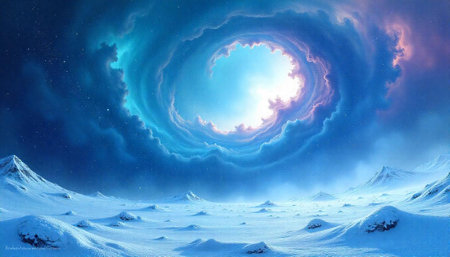 Abstract winter landscape with surreal sky and open space