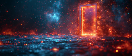 This is a digital data center in a virtual metaverse. It is an abstract path in a virtual world. In a digital universe, it is a modern door in a cyber space.