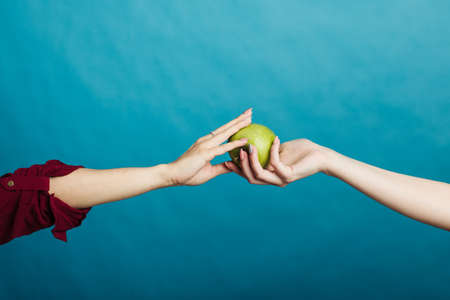 hand giving apple fruit needy person. Resolution and high quality beautiful photo
