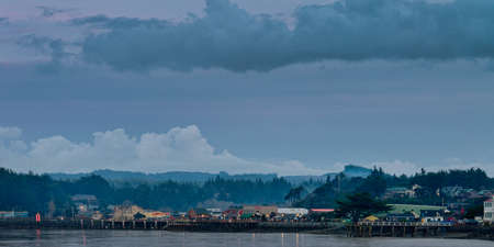Old Town and harbor docks in Bandon Oregon, a small town at the Oregon Coast.