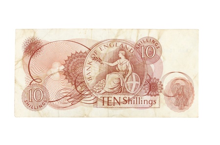 Ten pounds banknote with coin on light background. World economy crisis concept.