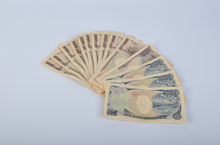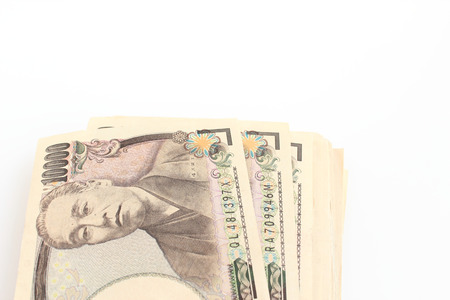 Japanese Yen banknotes on white background.