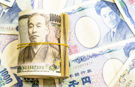 Stack of japanese currency yen or Japanese banknotes