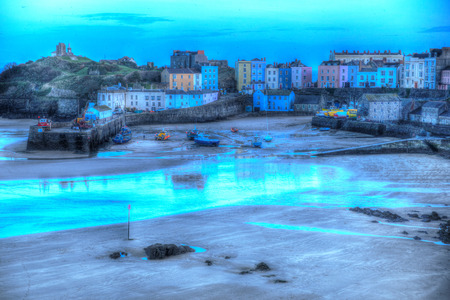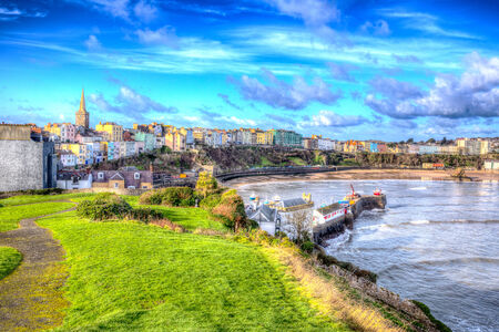 Tenby town Pembrokeshire Wales historic Welsh town in colourful HDR