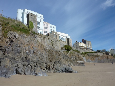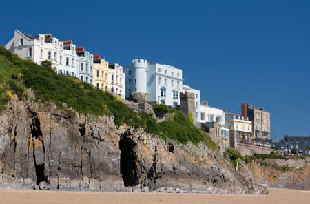 Houses on cliffs. Tenby, Wales.