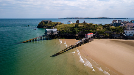 Aerial landscape view of Tenby harbor beach, Wales