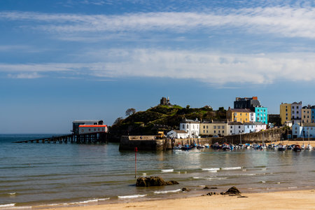Panoramic view of the picturesque and colorful Welsh seaside town of Tenby