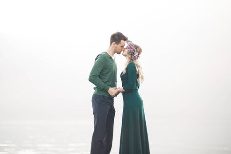 Cold toned green leaves background. Natural foliage botanical blue or mint background for design.