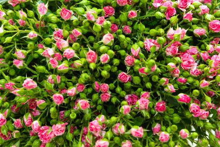 Bunch of Pink red bouquet of mixed roses. Pattern Fresh spring Summer background
