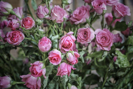Colorful pink roses in soft color and blur style for background, beautiful flowers for postcard or background. selective focus.