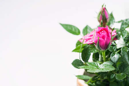 Roses in a pot on a white background. Selective focus