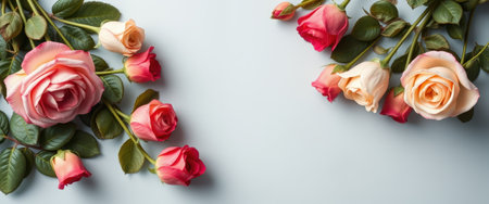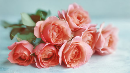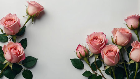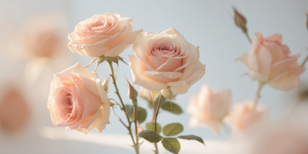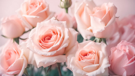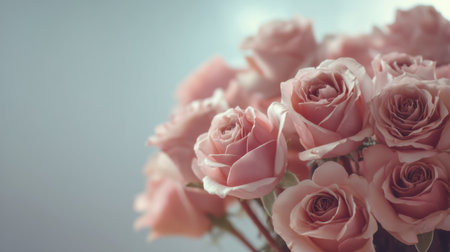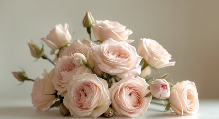 A beautiful arrangement of soft pink roses on a light background, creating a serene and romantic atmosphere, ideal for a variety of creative projects and occasions.