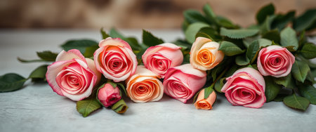 beautiful pink and cream roses bunch, background