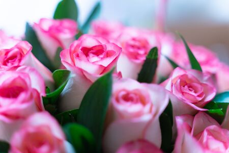 Bunch of Pink red white bouquet of mixed roses. Pattern Fresh spring Summer background
