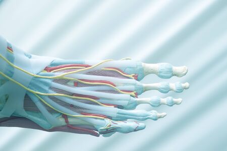 Human foot toes medical teaching model showing bones ligaments tendons and cartilage.
