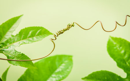 A passion flower tendril curls around and around.