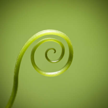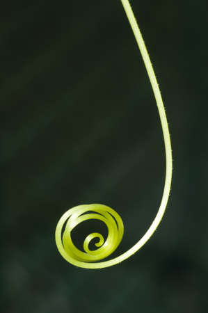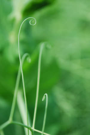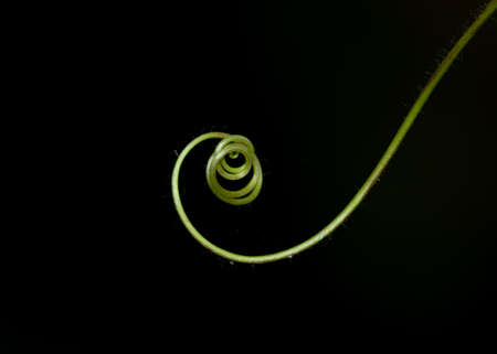 A macro shot of the spiralling tendril of a sweet pea plant.