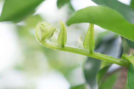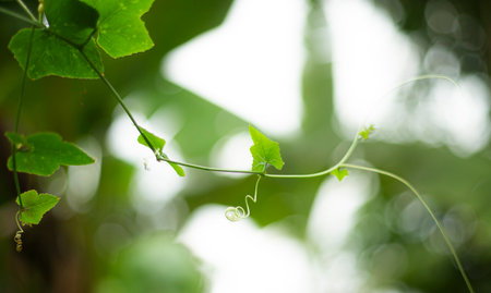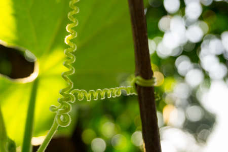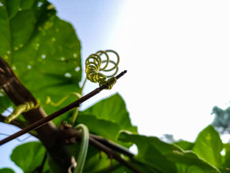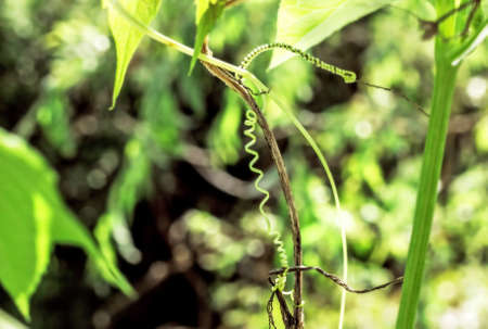 Vine, climbing plant tendrils isolated in an Indian garden with out of focus in natural settings.