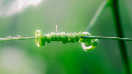 Macro photography of stuffing cucumber curling tendrils, captured in a farm near the colonial town of Villa de Leyva, Colombia,