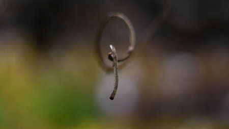 fingers hold a thin green twisted in a spiral stem of a wild plant