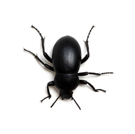 Macro shot of forest dung beetle (Anoplotrupes stercorosus) on white background surface