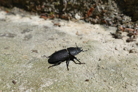 Image of black beetle on sand background. Insect Animal. Insect Animal