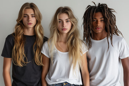 Three models in black and white tees convey simplicity and modern style against a neutral backdrop