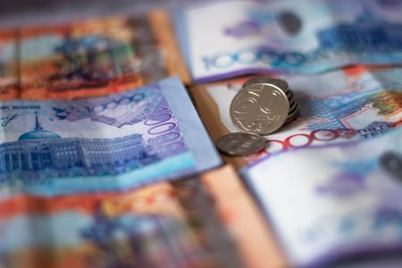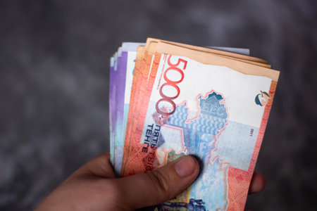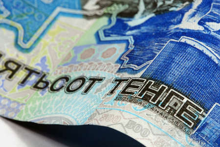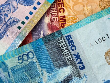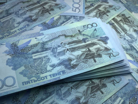 Money of Kazakhstan. Kazakhstani tenge bills. KZT banknotes. 500 tenge. Business, finance, news background.