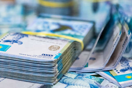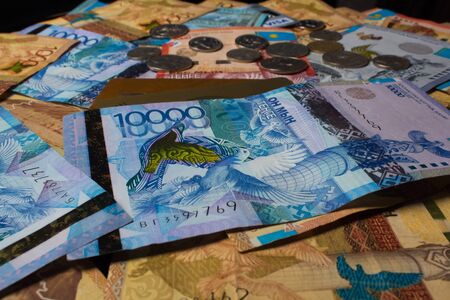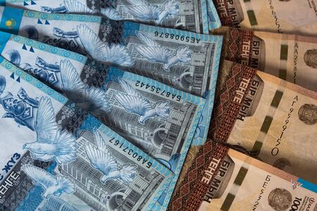 Paper banknotes tenge KZT. Tenge is the national currency of Kazakhstan. bank of Kazakhstan