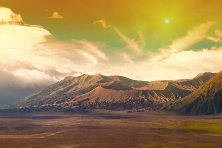 Beautiful volcanic landscape. Toned image. Bromo Tengger Semeru National Park, East Java, Indonesia