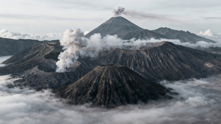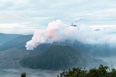 Mount bromo volcano in indonesia erupting with smoke and ash