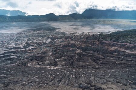 Nature landscape of surface wave of volcanic soil texture background at slope of Bromo mountain at Bromo Tengger Semeru National Park, East Java, Indonesia
