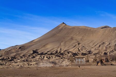 Hindu temple at the Bromo volcano mountain hill