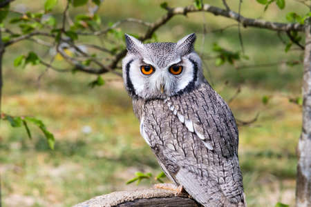 Eared Owl sitting on a tree and watching its prey, the best photo
