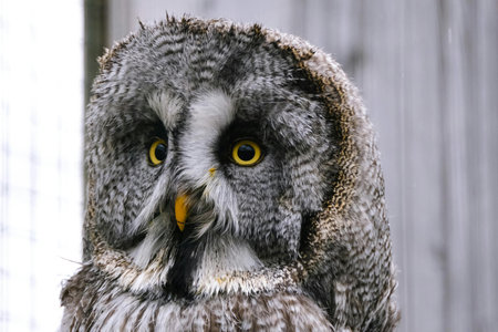 Portrait of Great Gray Owl or Lapland Owl, Strix nebulosa, a very large owl, eye