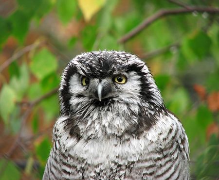 Northern hawk-owl (Surnia ulula). Wildlife bird.
