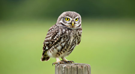 Charming Little Owl Perched Old Post Looking Camera Wildlife Portrait
