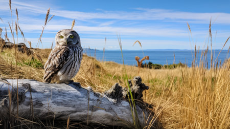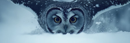 Majestic owl perched in a serene snow-covered landscape, captivating wildlife photography image.