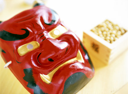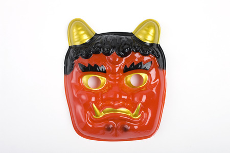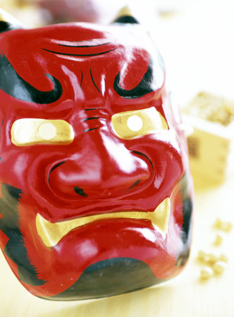 Japanese devils mask and japanese rosted beans of scattering ceremony at the beginning of spring