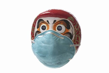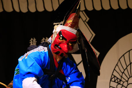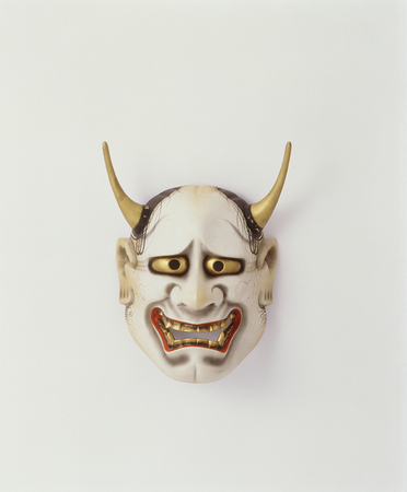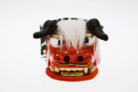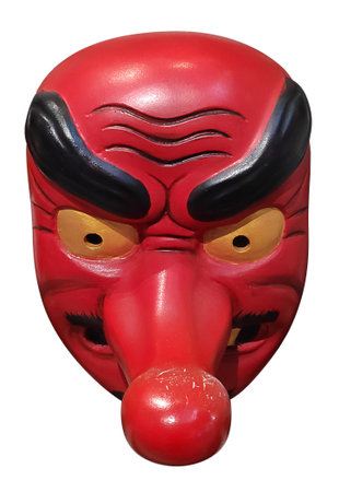 Traditional japanese mask of a demon isolated on white background with clipping path. The mask shadow kabuki is a classical japanese dance drama with theater form, Selective Focus.