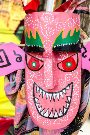 Colorful traditional Balinese masks which are on the market. Souvenirs. Bali Indonesia