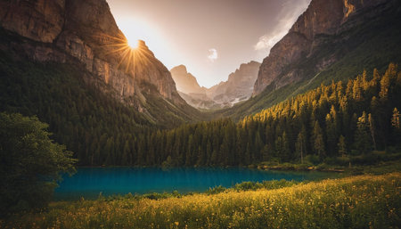 An AI generated illustration of majestic mountains revealing the majestic calm crisp beauty of nature