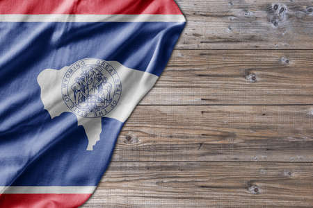 United States country state Wyoming on old wooden pattern table board