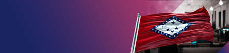 Arkansas flag waving in the wind, close up view. 3D illustration