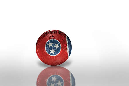 bitcoin with the flag of tennessee state on the white background. bitcoin mining concept.3d illustration