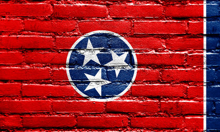 Tennessee grunge, damaged, scratch, old style united states flag on brick wall.