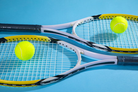 Tennis ball and rackets on the blue background.
